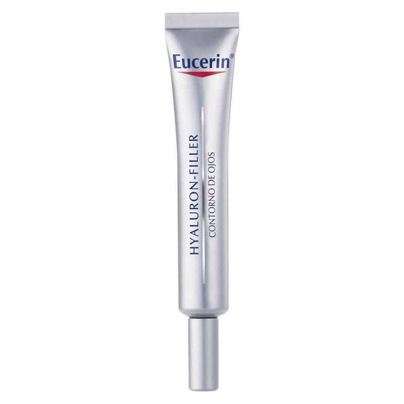 Eucerin Hyaluron-Filler Crema Contorno de Ojos fue formulado especificamente para combatir las arrugas denominadas "patas de gallo" que se forman en la delicada zona del contorno de ojos. La formula con una combinacion de acido hialuronicode peso molecular alto y bajo funciona tanto en las arrugas ya existentes como en las que estan apareciendo, y ademas contiene glicina saponinabioactiva. El FPS 15 mas la proteccion UVA reducen los signos del envejecimiento prematuro y la profundidad de las arrugas en la zona del contorno de ojos, para dejar la piel con un aspecto mas suave y mas juvenil.