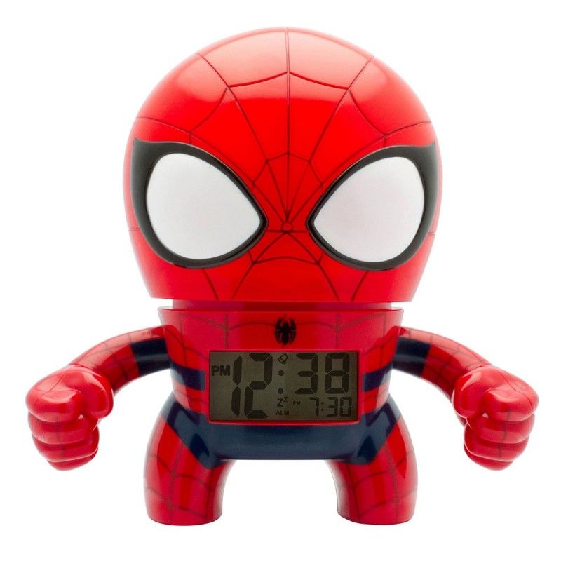 Despertador Bulb botz Marvel Spider-Man 7.5” Tall , con funciones de alarma y repeticion de alarma, pantalla LCD digital de 12/24 horas con luz de fondo. La luz de fondo y la funcion de repeticion de alarma se activan presionando hacia abajo la cabeza.
