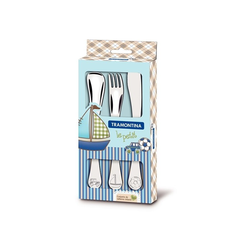 JUEGO DE CUBIERTOS PARA NIÑO 3 PIEZAS, CON DETALLES DIVERTIDOS Y DIFRENTES EN CADA PIEZA, CONTIENE :1 CUCHILLO, 1 CUCHARA Y 1 TENEDOR EN ACERO INOXIDABLE 18/10. ACABADO EN ALTO BRILLO.