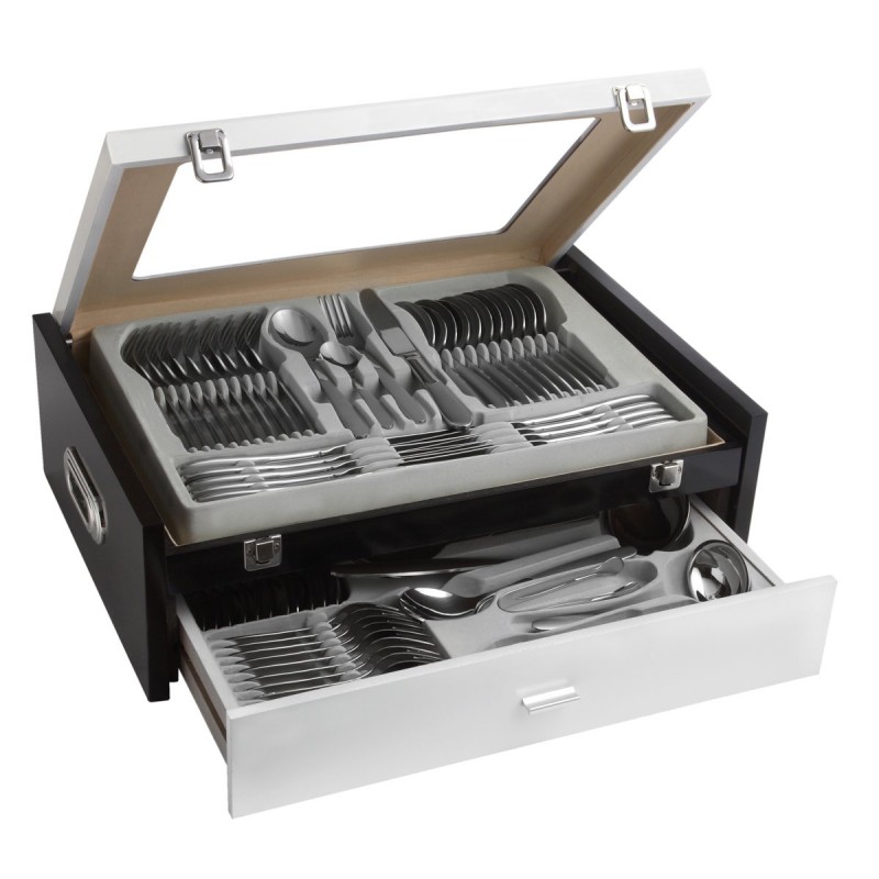 CUBIERTOS FABRICADOS EN ACERO INOXIDABLE DE LA MÁS ALTA CALIDAD . Dimensiones: ALTO 14.5 cms, FRENTE 48 cms, FONDO 33 cms. PESO:8,585 kg