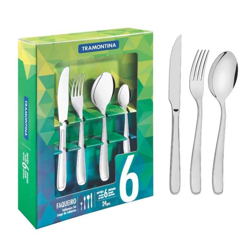 JUEGO DE CUBIERTOS MARESIAS 24PZ. CUBIERTOS DE ACERO INOXIDABLE. CONTIENE: 6 CUCHILLOS DE ASADO, 6 TENEDORES DE MESA, 6 CUCHARAS DE MESA Y 6 CUCHARAS PARA CAFÉ.. Dimensiones: ALTO 6, FRENTE 29, FONDO 20.5. PESO:0.95