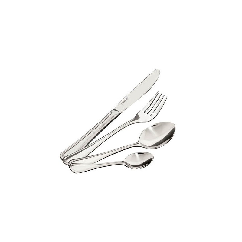 JUEGO DE CUBIERTOS FABRICADO EN ACERO INOXIDABLE COMPUESTA DE 24 PZS PULIDO ESPEJO.. DIMENSIONES: ALTO 5 CM, FRENTE 17 CM, FONDO 25 CM. PESO EN GRAMOS:1230